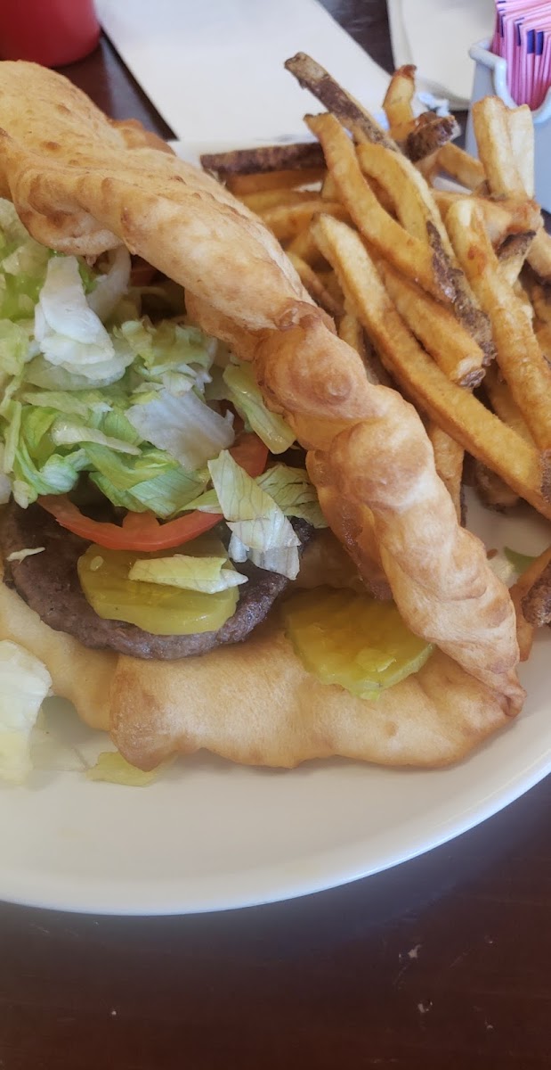 Frybread plays a central role in many meals at Nataaní Nez. It appears alongside lamb stew, wrapped into sandwiches, or paired with burgers and fries. The Navajo Burger with frybread and fries combines classic comfort with a regional twist, making it one of the most talked about plates.